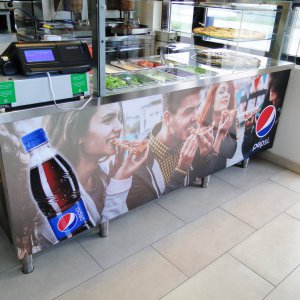 Wir verwenden direkte Beklebung oder PVC-Banner.